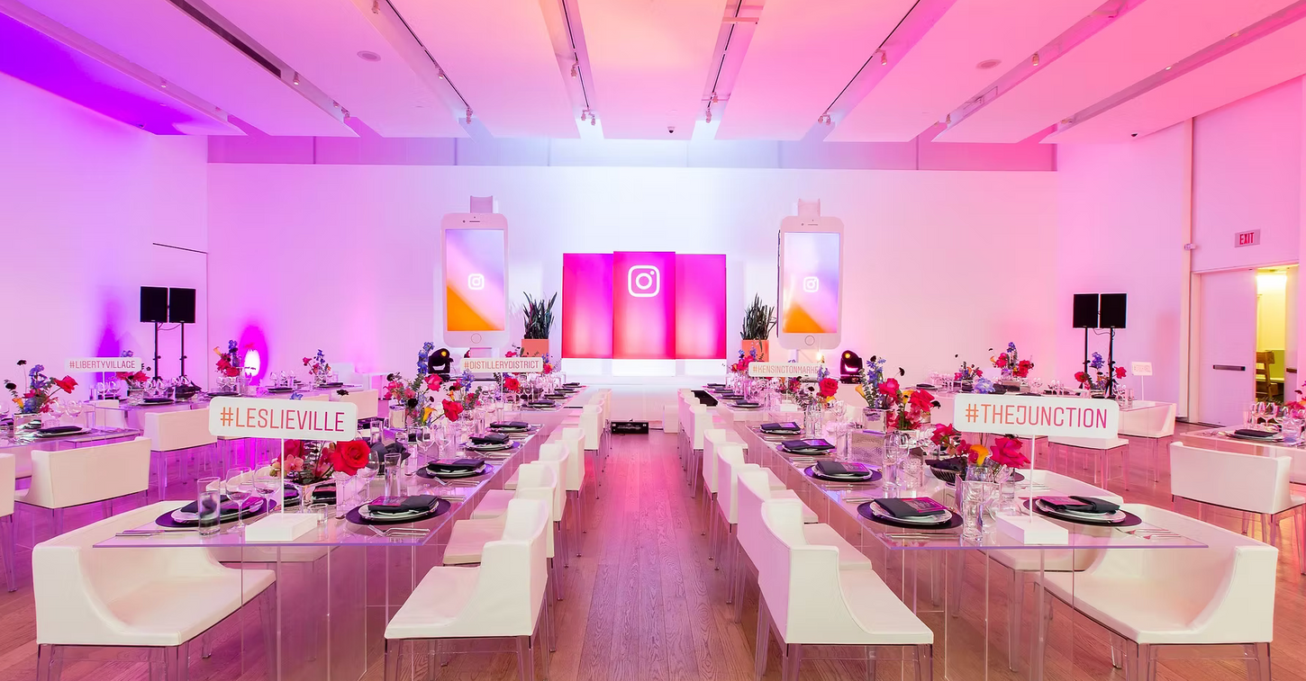 We developed a warm, modern, and visually compelling dinner environment inspired by Instagram’s vibrant visual culture. Lighting, florals, and décor were carefully selected to create both in-person ambiance and photo-ready moments.